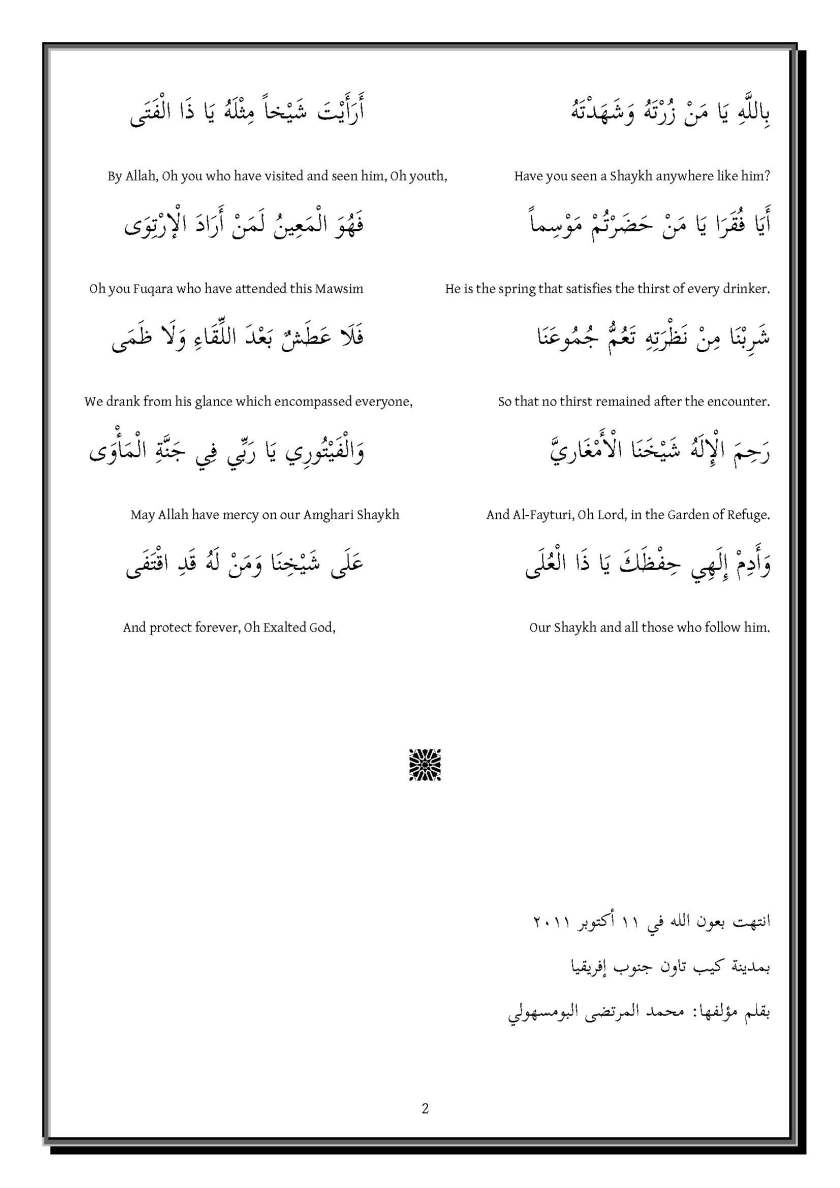 This is placed here as a resource for the Fuqara, in response to requests for the English translations of these greats men’s songs. As far as I know this is very hard to find and is out of print and is the only copy I have.